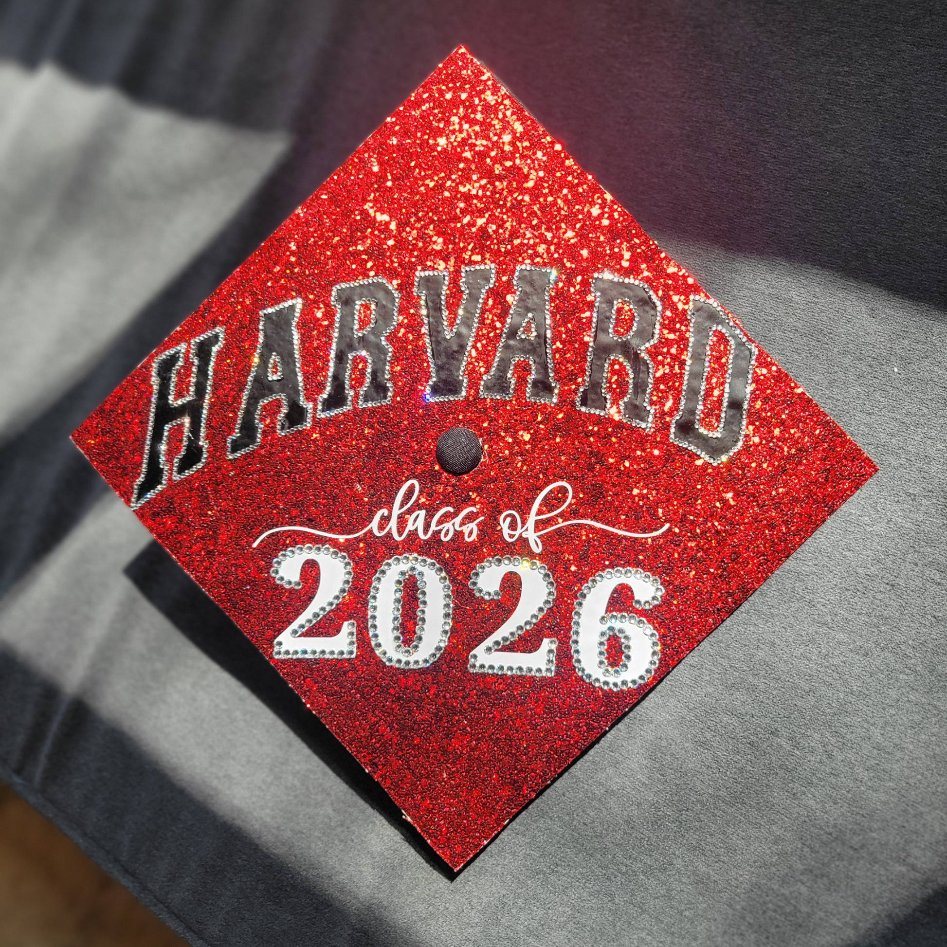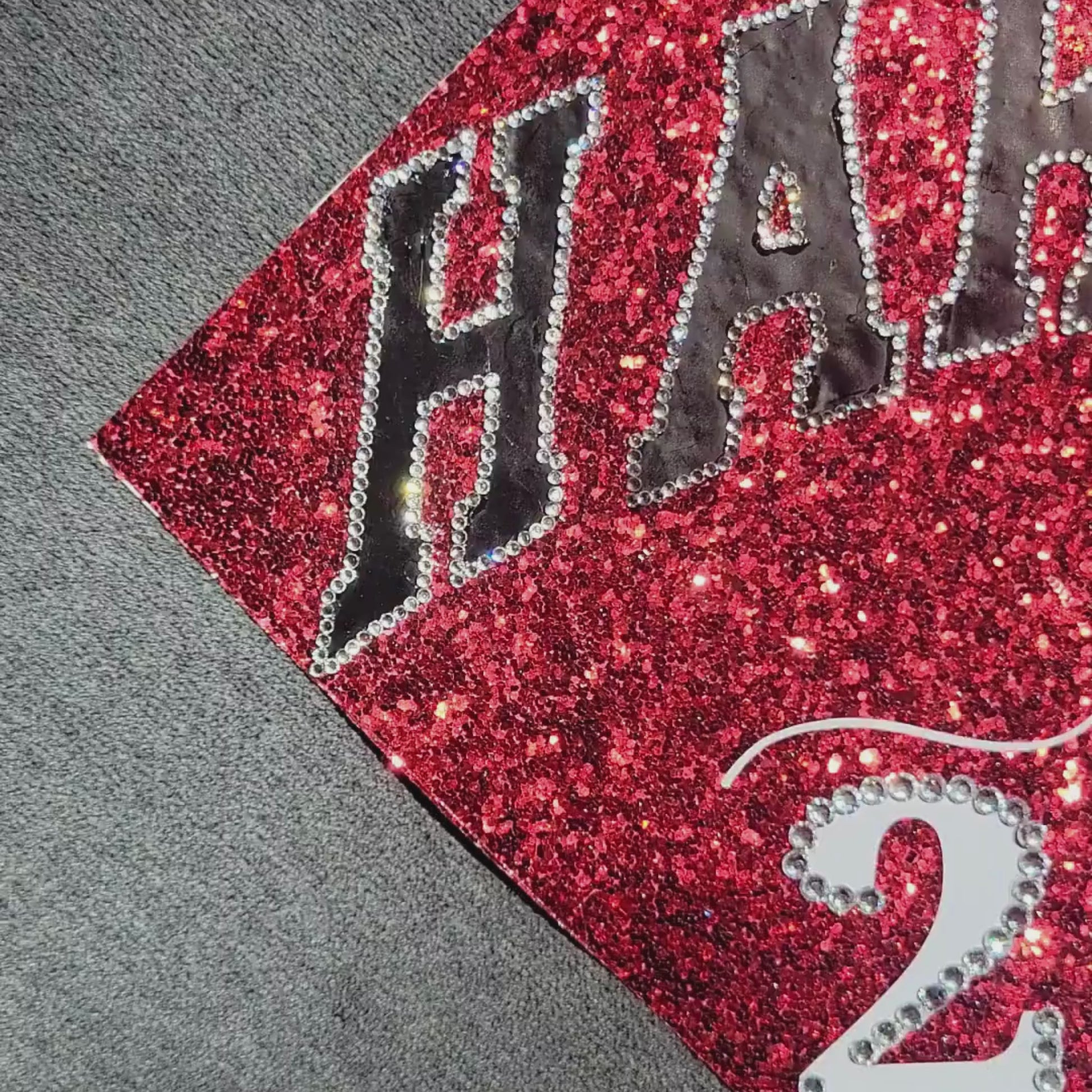 Step into your moment with a design that shines. The Spotlight features a glitter base and a bold, polished layout that highlights your school pride while adding a touch of personalization.